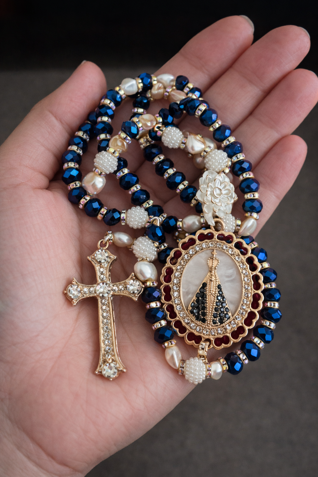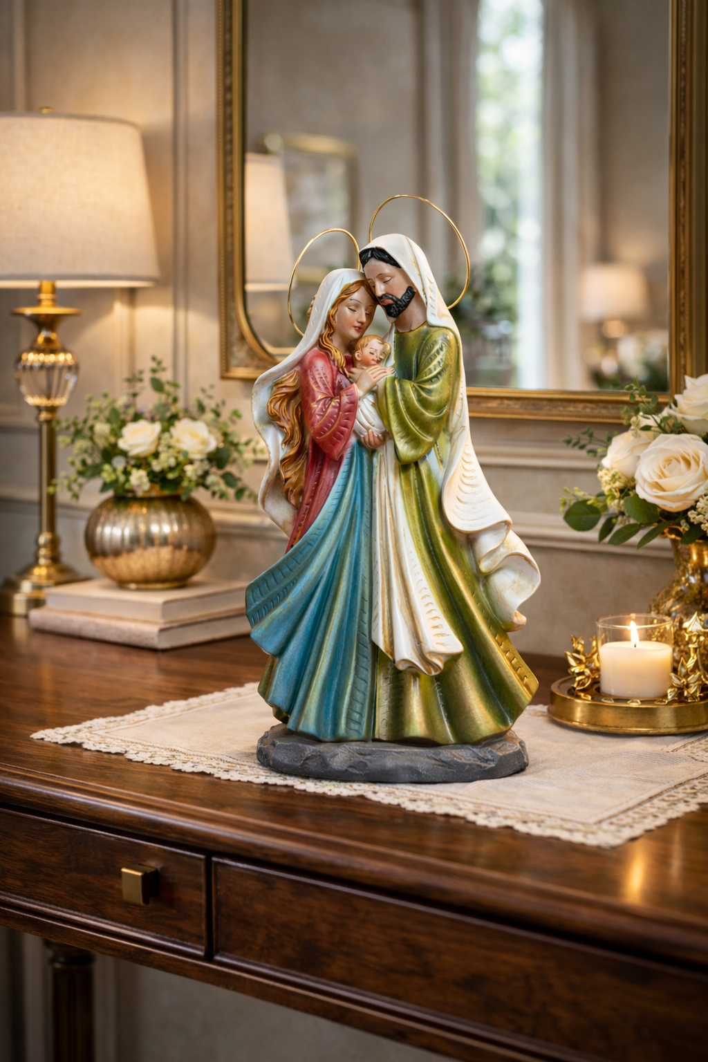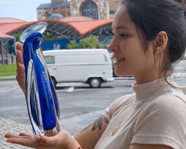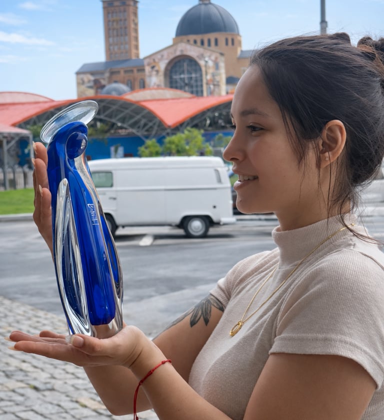 Eleve a sua decoração com esta elegante imagem de vidro soprado, representando uma figura sagrada em tons de azul translúcido. Ideal para espaços de fé, oração ou como presente especial. Feita artesanalmente, cada peça possui detalhes únicos que a tornam exclusiva.